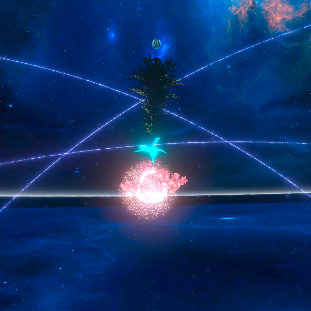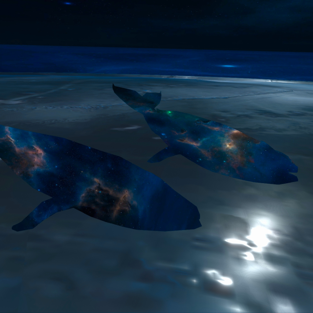 2021-2023 – Underworld is an interactive Virtual Reality environment in NEOS VR and Resonite VR that houses twin cyber whales. The whales interact with visitors and compose whale songs based on their real time interpretation of JE Solo’s compositions.