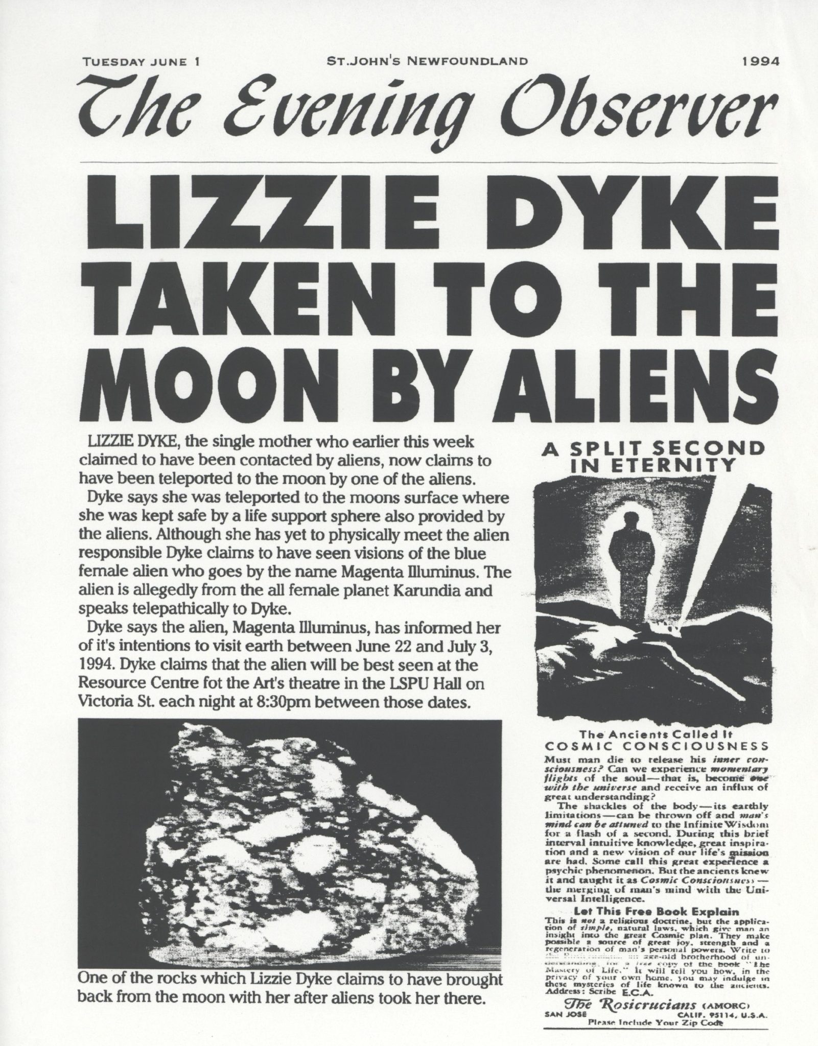 Check out this ancient artifact—a press flyer from 1994 advertising the Alienation of Lizzie Dyke performance: